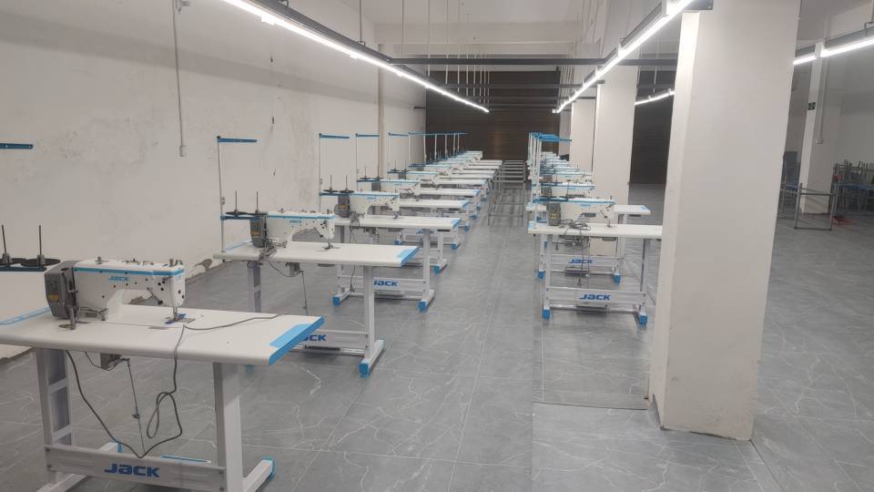 定扣机:3台,剪线机:1台,验布机:1台,钉扣:3台,平车:30台,电烫炉:1台,针扣机:1台,直眼:1台,打边机:5台,烫台:2台,裁床:1台,五线:1台,四线:1台