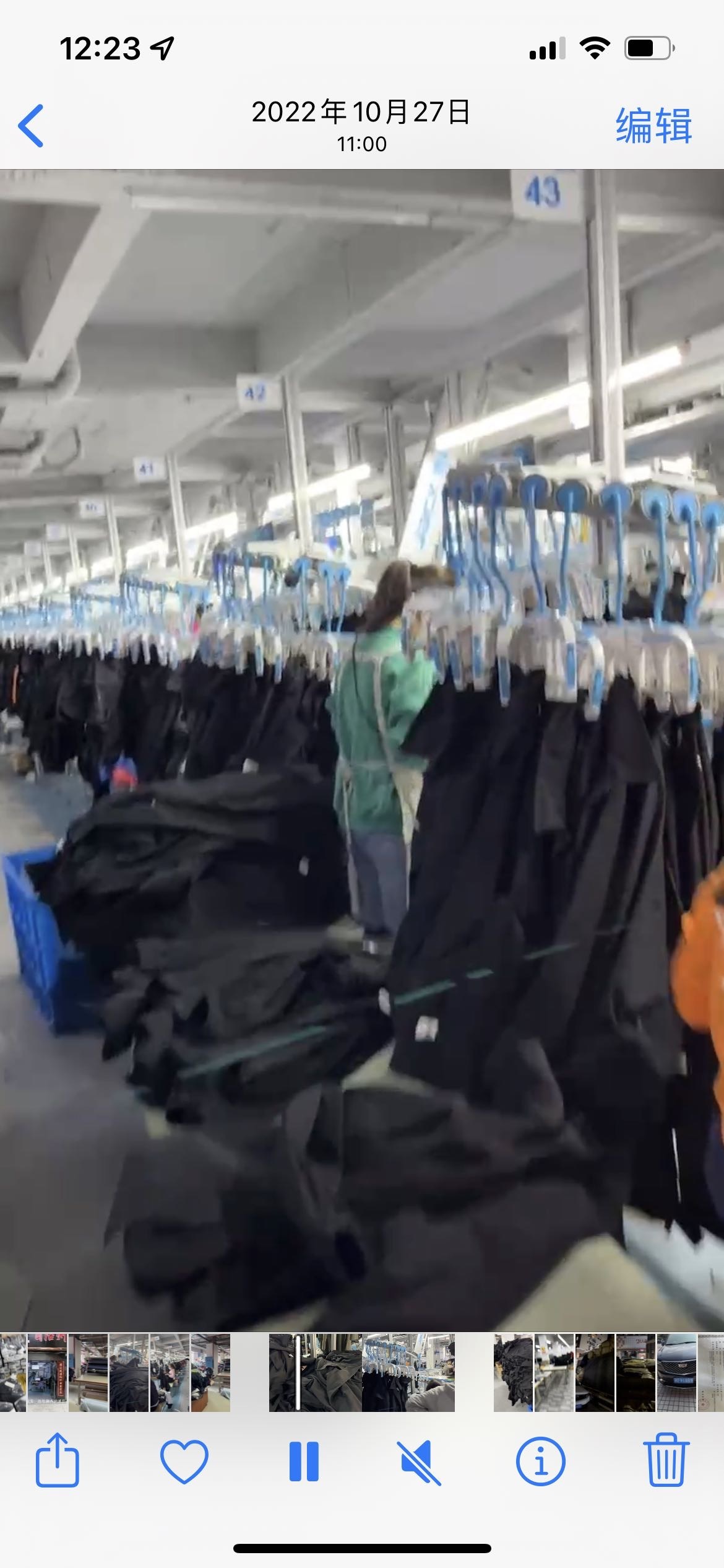 本厂共有五条吊挂流水线,全厂职工160余人.年产100余万件