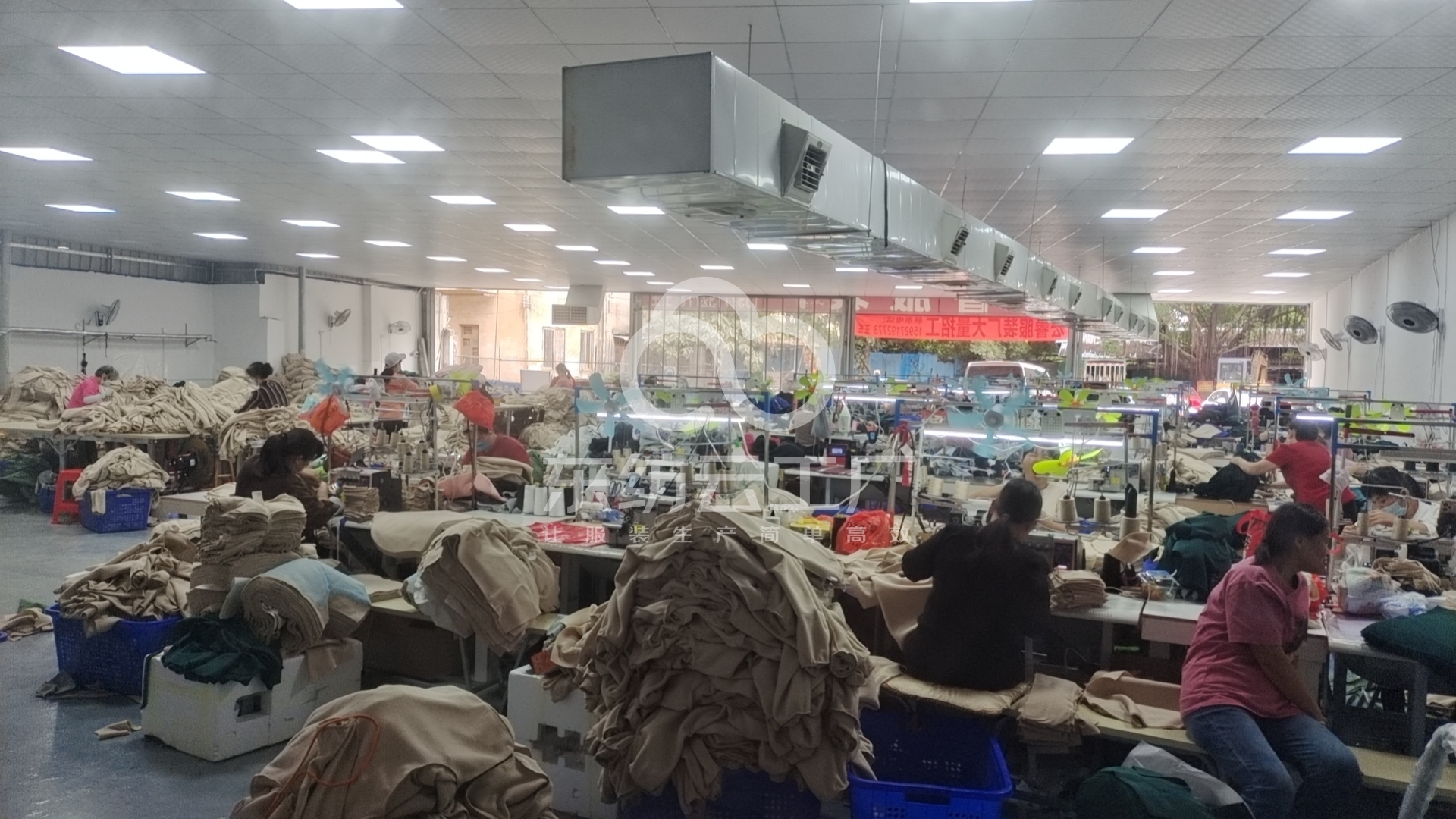 现有两个工厂,一个衣服,一个裤子,主要是做希音供货商加工,T恤,卫衣套装,棉T,牛奶丝,数码印花,八十位姐妹,日产五千件衣服