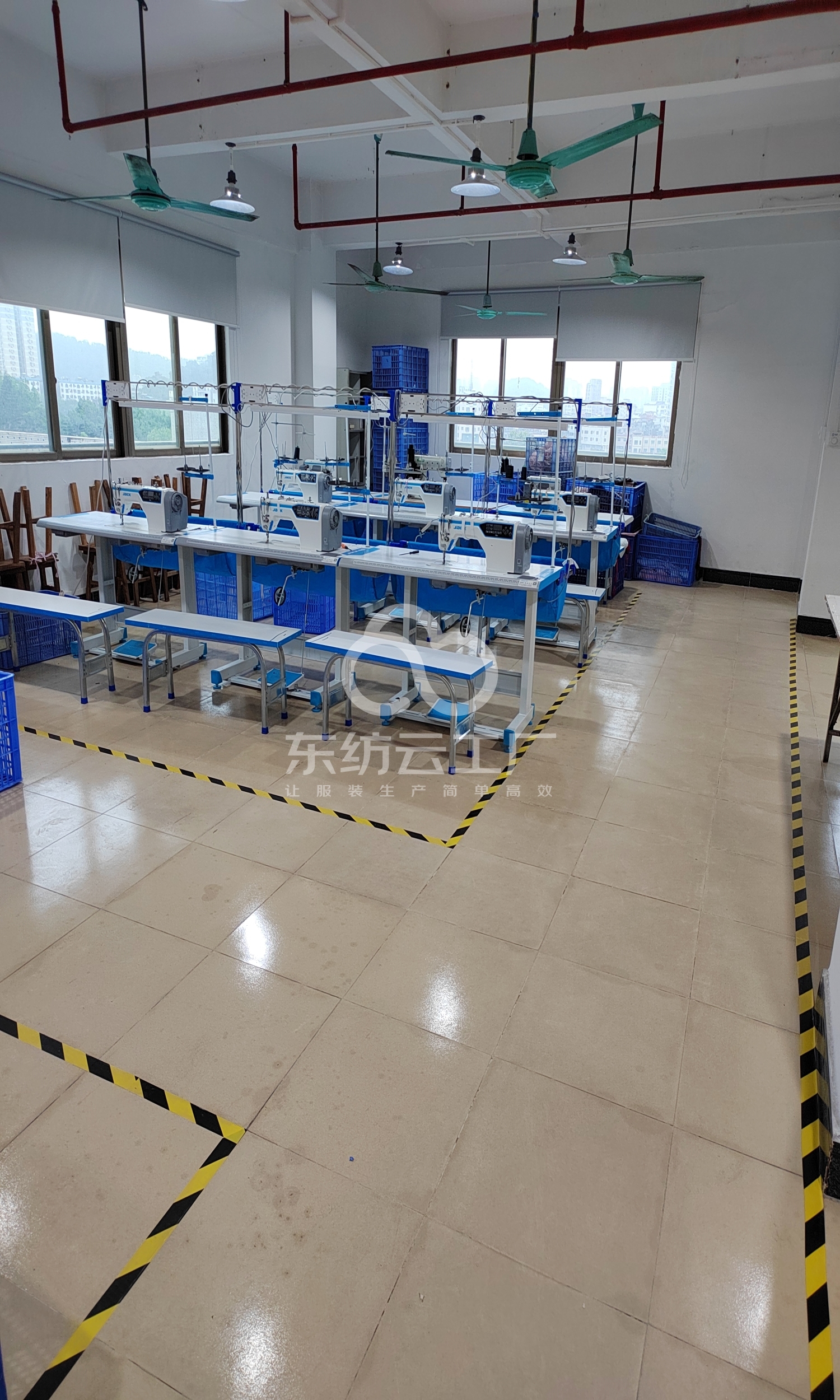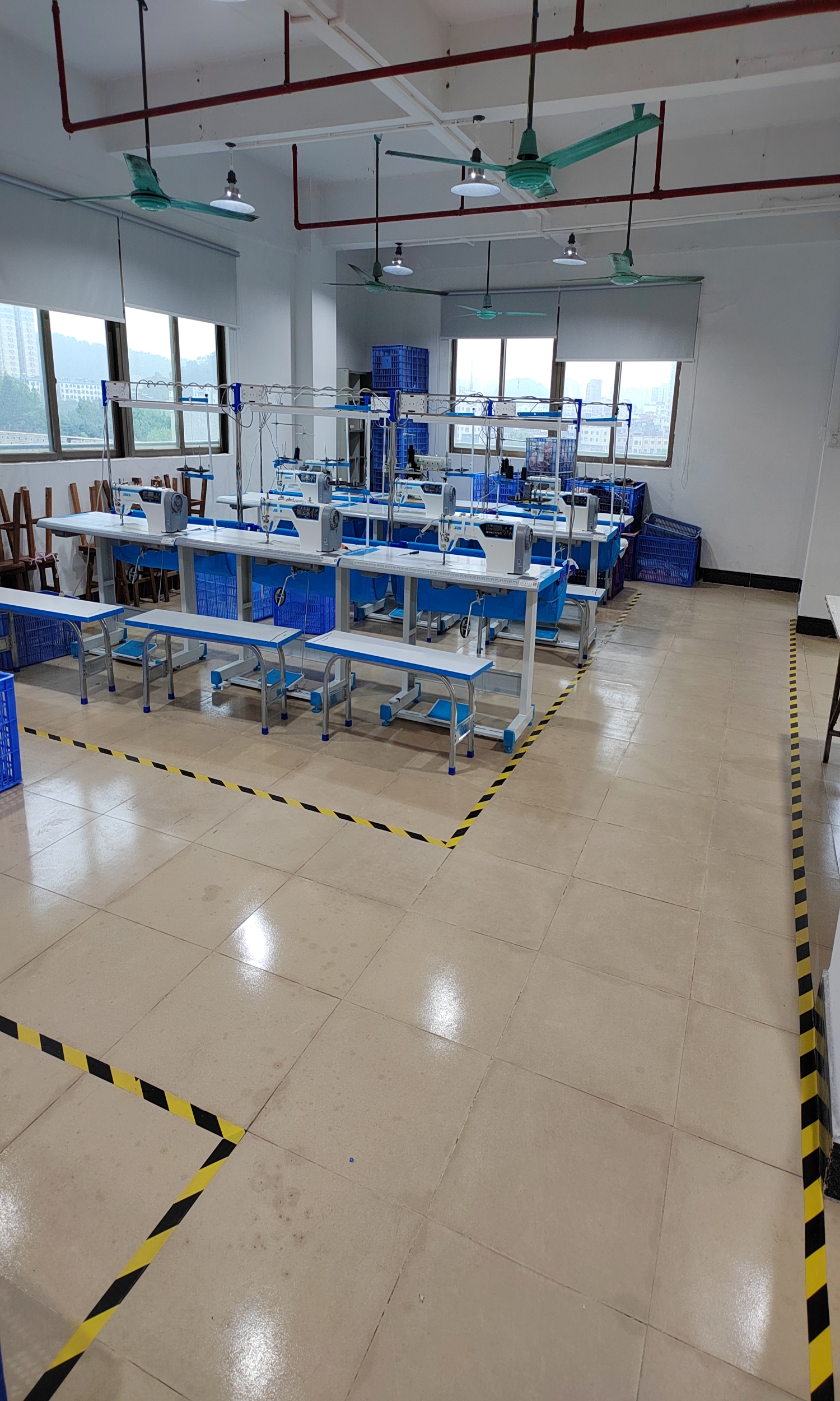 自动拉布机:1台,电脑自动裁:2台,松布机:1台,验布机:1台,颗粒炉:1台,平眼:1台,平车:10台,电烫炉:3台,直眼:1台,电脑凤眼:1台,打边机:6台,双针车:1台,烫台:3台,冚车:3台,锅炉:1台,五线:1台,四线:6台