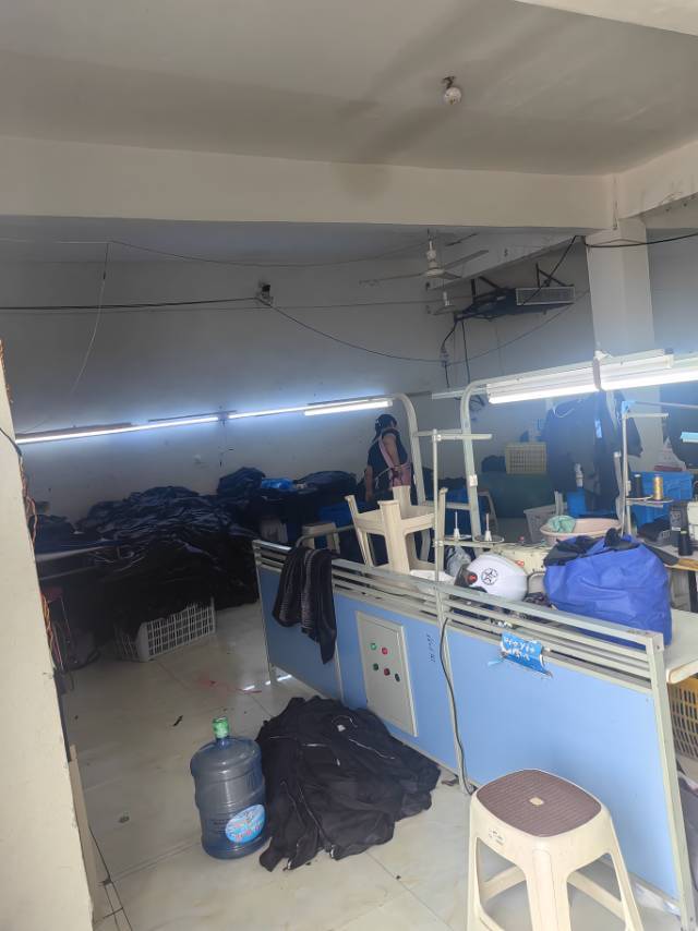 钉扣:2台,平车:15台,针扣机:2台,电脑凤眼:1台,打边机:1台,烫台:2台,四线:2台