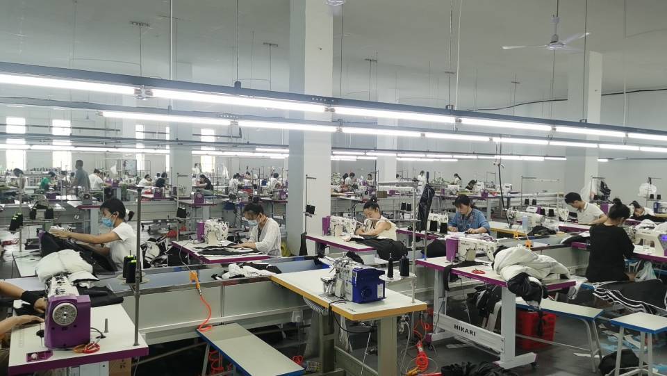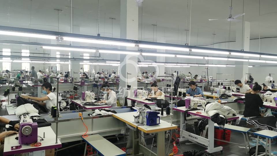 目前工厂十二条生产线,针织梭织羽绒服冲锋衣全套设备都有,具备服装全品类生产能力,全厂工人在三百人左右。属于大型服装企业