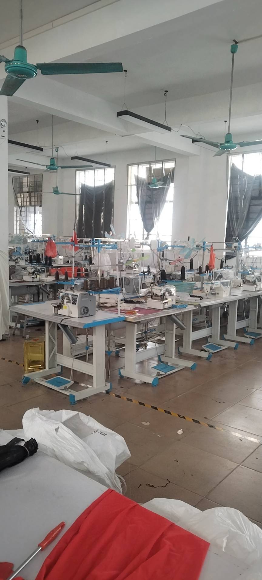 定扣机:2台,剪线机:3台,断布机:2台,钉扣:2台,平眼:1台,吊机:1台,平车:50台,电烫炉:2台,直眼:1台,电脑凤眼:1台,打边机:20台,双针车:2台,电剪:4台,烫台:4台,冚车:6台,唛架机:2台,锅炉:2台,水空调:3台,裁床:1台,五线:3台,四线:20台
