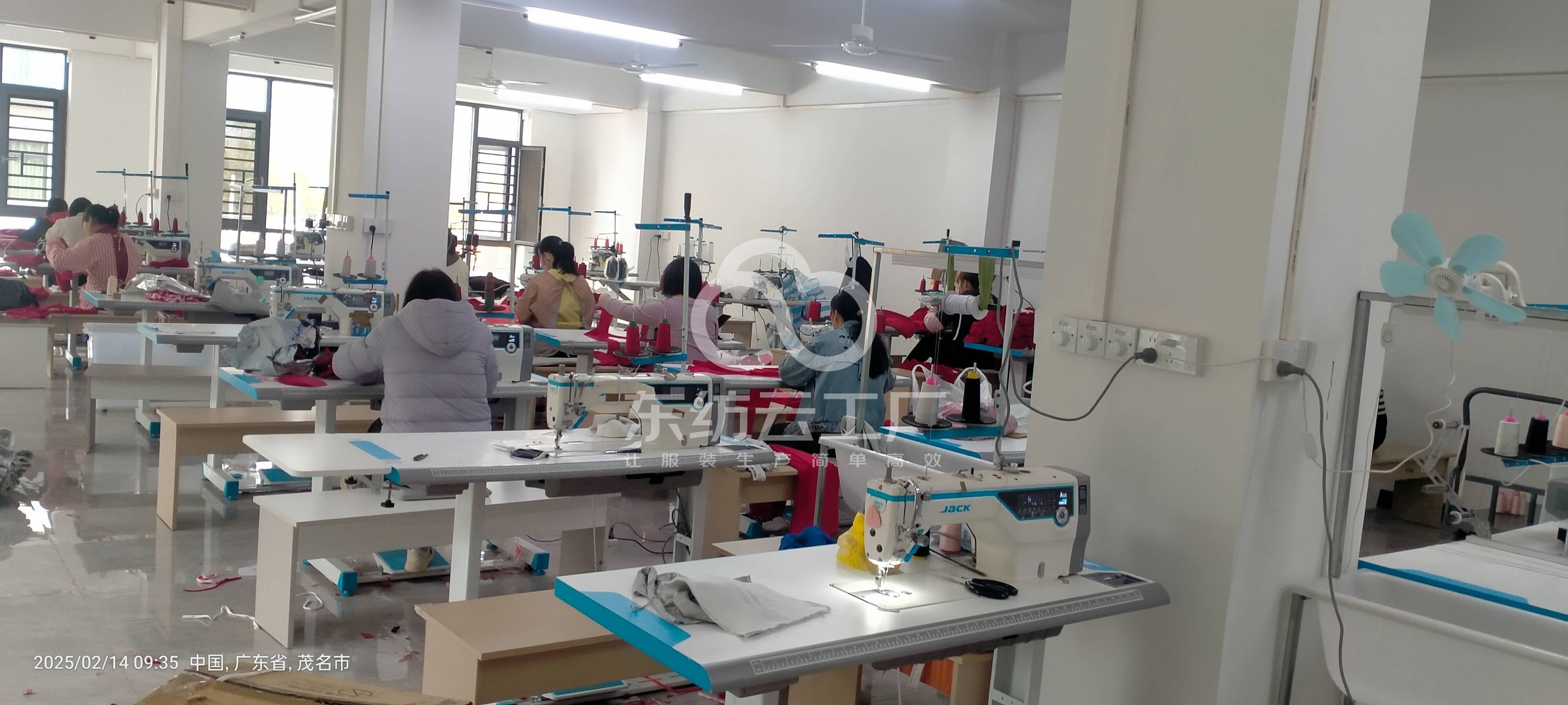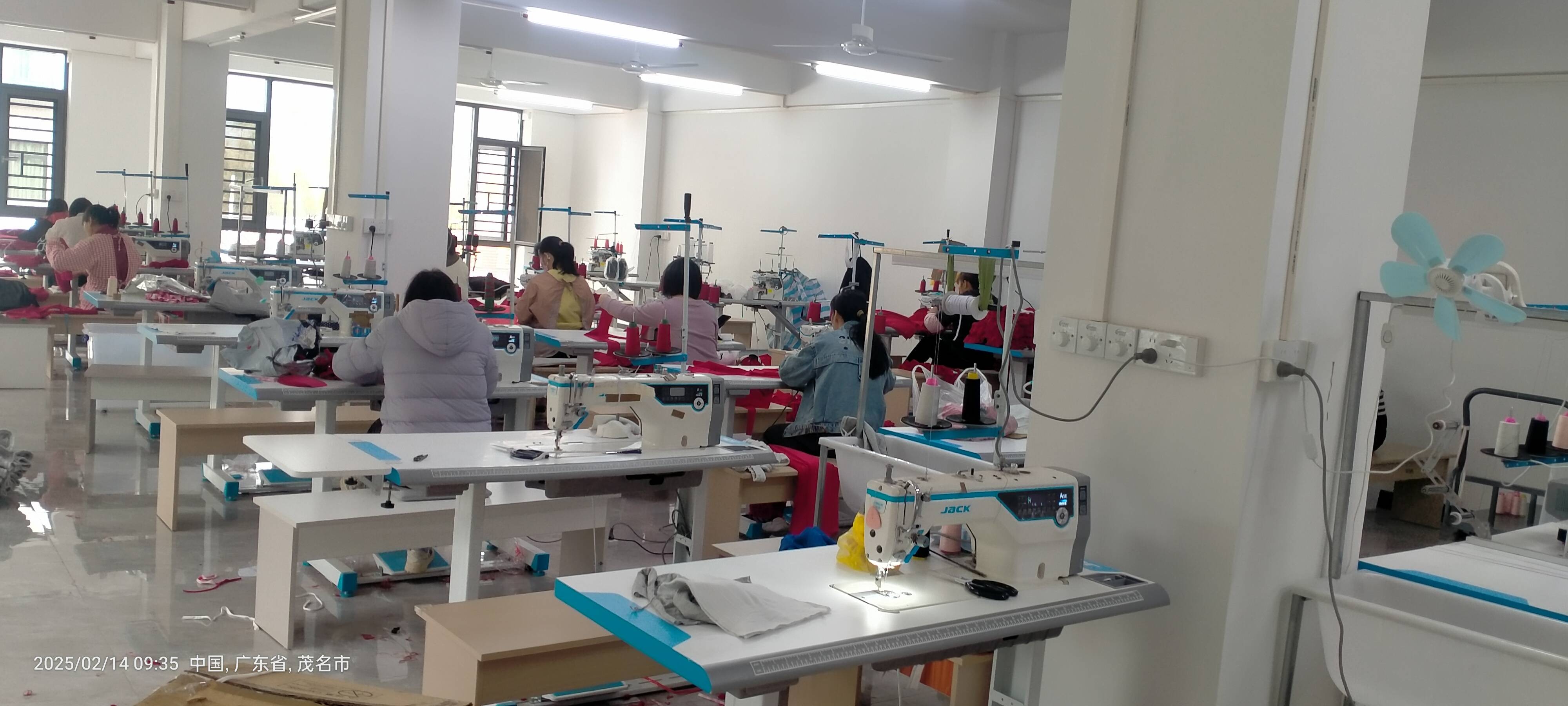 自己的厂房,现在没有裁床,年中再加开裁床,现在先做加工,男女针织T,如有其它需要,可以再增加,工人可以加到100一130人