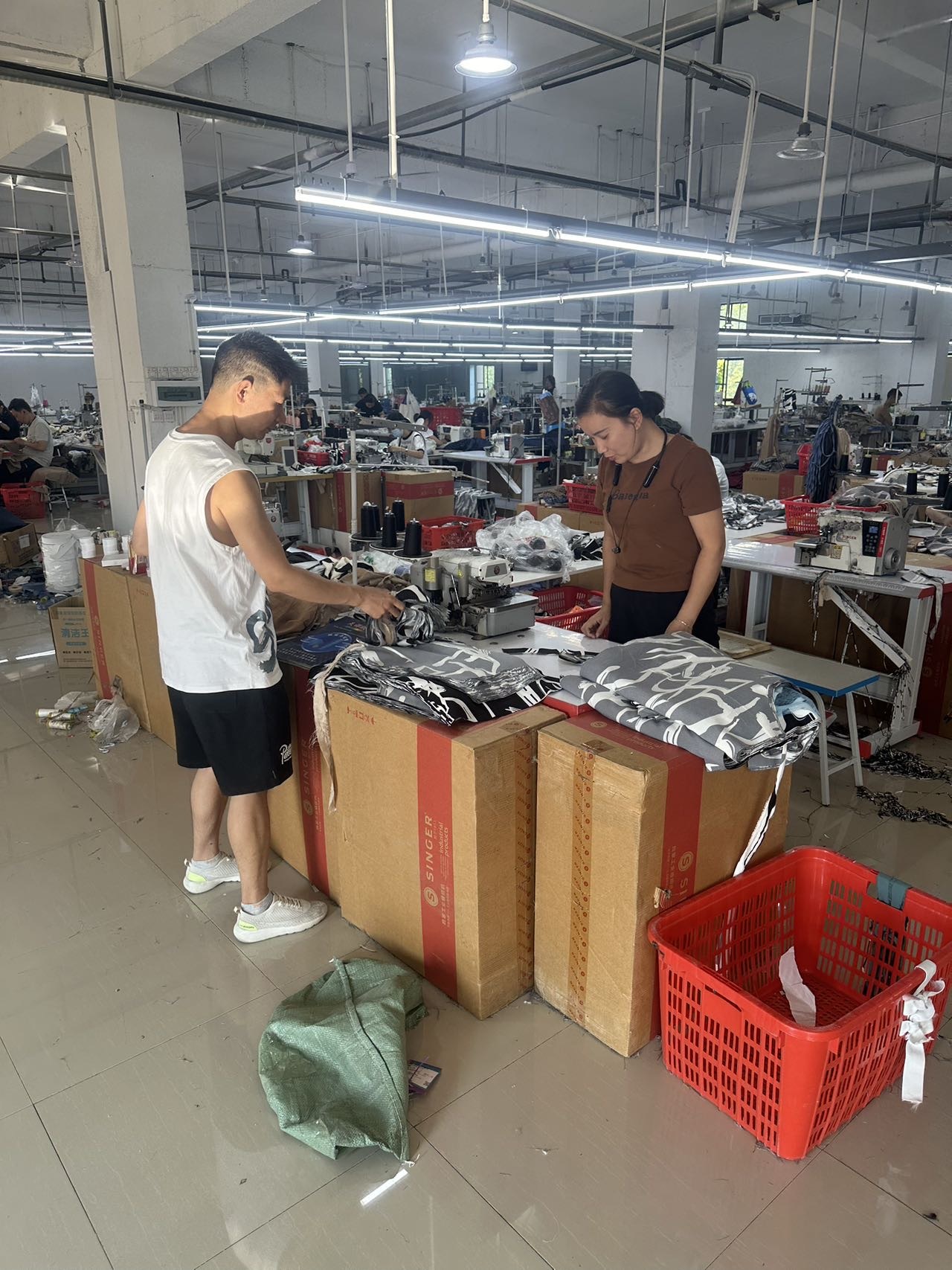 裤头车:1台,智能模板机:4台,啤机:6台,松布机:1台,断布机:6台,钉扣:3台,自动打扣机:3台,颗粒炉:1台,平眼:2台,平车:150台,电烫炉:2台,直眼:2台,打边机:60台,双针车:5台,电剪:8台,烫台:15台,冚车:4台,唛架机:2台,锅炉:2台,水空调:20台,裁床:4台,五线:60台,四线:60台