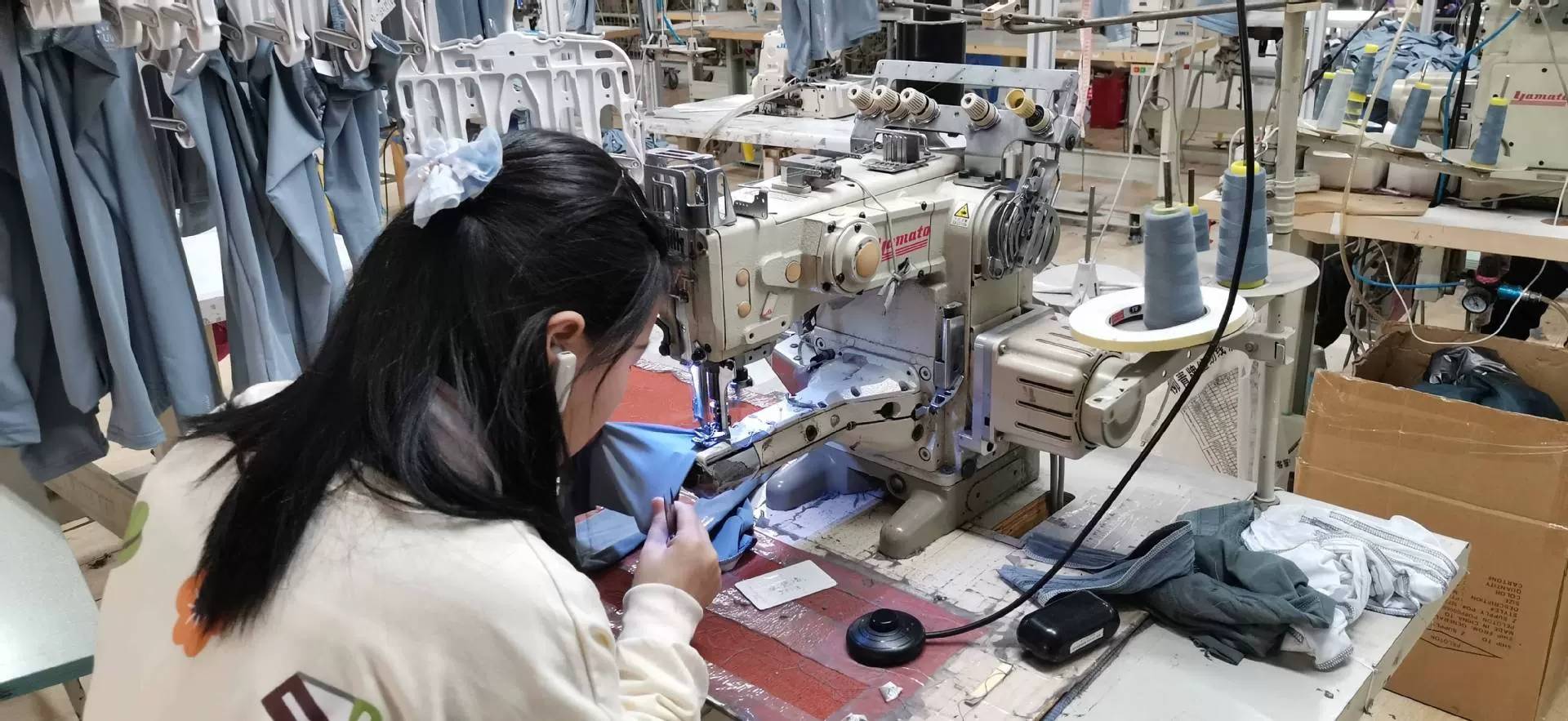 自动拉布机:1台,剪线机:6台,断布机:3台,自动打扣机:2台,平车:30台,电烫炉:2台,直眼:3台,电脑凤眼:2台,打边机:5台,电剪:5台,烫台:8台,冚车:8台,唛架机:1台,锅炉:2台,水空调:5台,裁床:3台,五线:5台,四线:15台