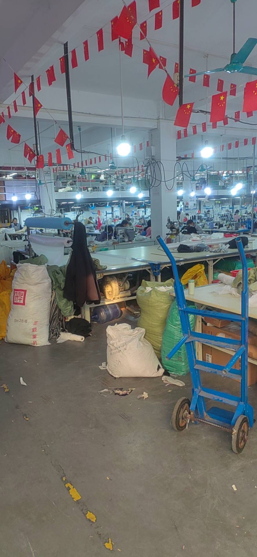 裤头车:1台,定扣机:1台,剪线机:1台,验布机:1台,断布机:1台,钉扣:1台,颗粒炉:1台,平眼:1台,吊机:1台,平车:10台,电烫炉:1台