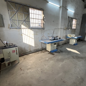 本工厂生产设备齐全配套完善,裁床,中道以及后道整烫包装等!