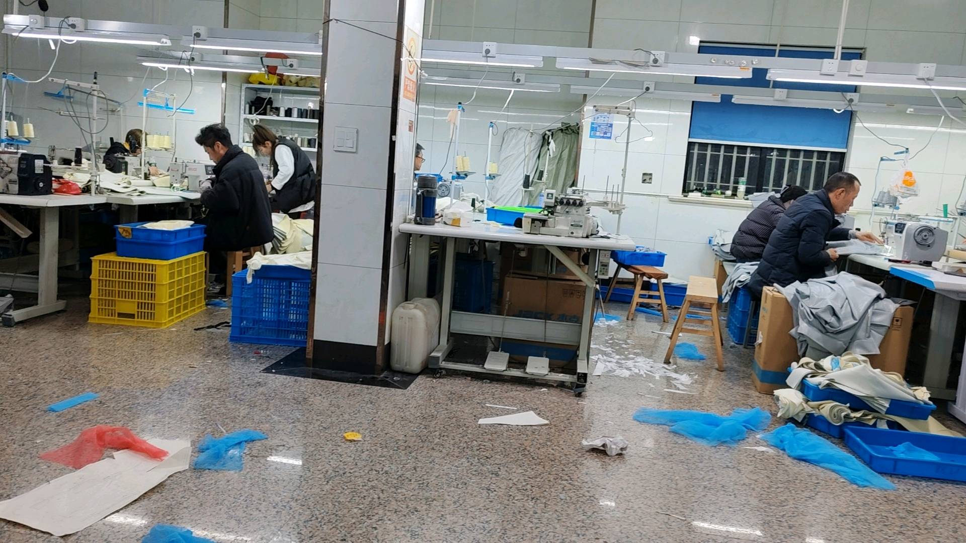 智能模板机:2台,自动拉布机:1台,电脑自动裁:1台,啤机:1台,松布机:1台,定扣机:2台,挑脚机:1台,剪线机:2台,验布机:1台,断布机:1台,钉扣:4台,自动打扣机:2台,平眼:2台,平车:30台,电烫炉:3台,打边机:5台,双针车:4台,电剪:3台,烫台:5台,冚车:2台,唛架机:1台,锅炉:1台,裁床:2台,五线:3台,四线:4台