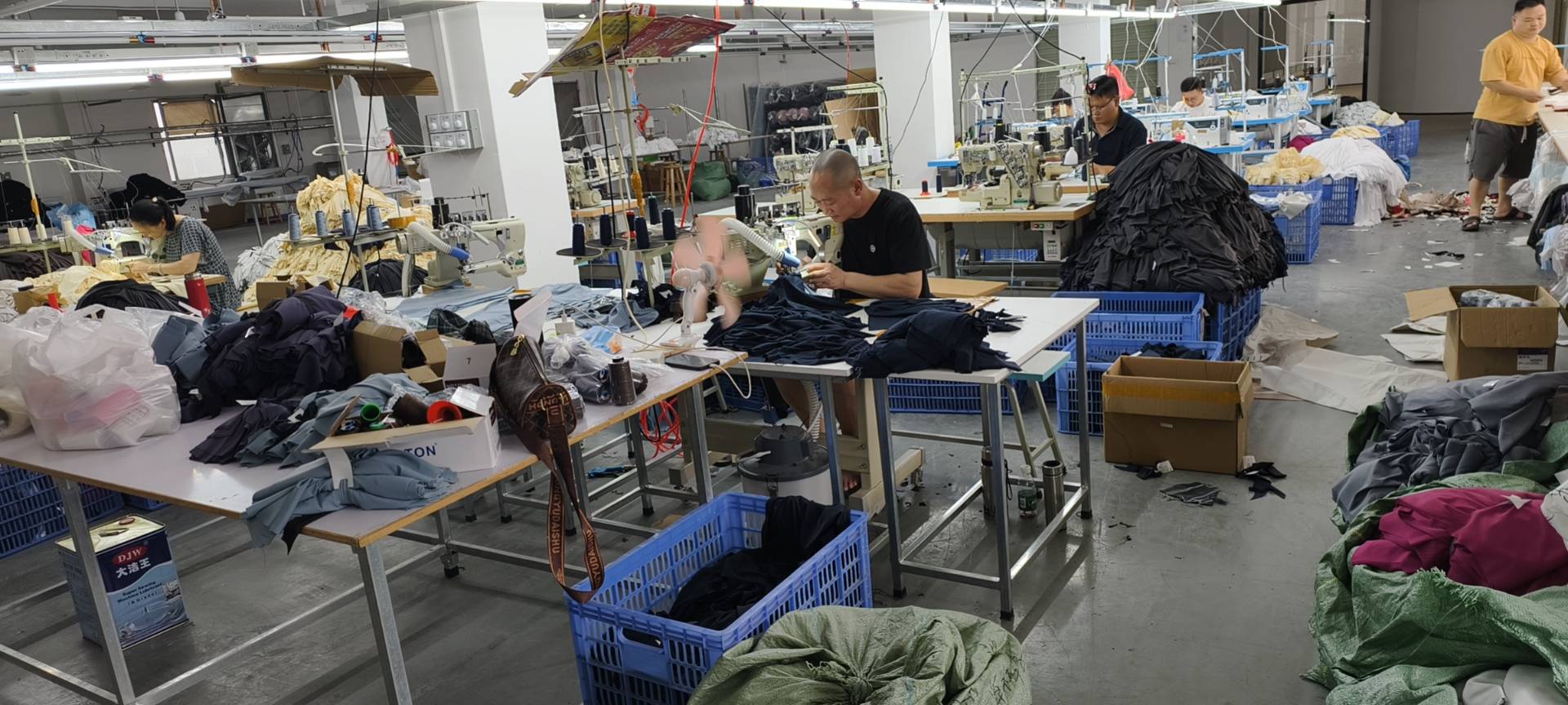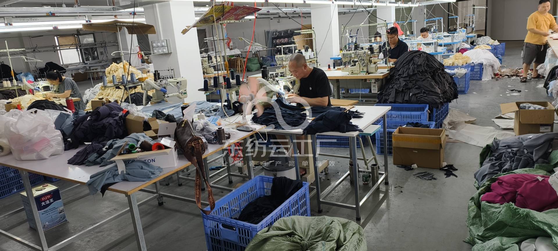 自动拉布机:1台,松布机:1台,验布机:1台,断布机:1台,颗粒炉:1台,平眼:1台,平车:8台,打边机:6台,电剪:2台,冚车:4台,唛架机:1台,锅炉:1台,水空调:6台,裁床:2台,四线:4台
