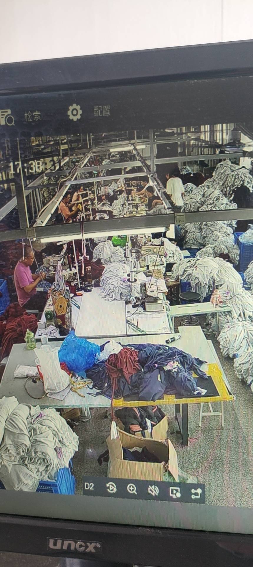 松布机:1台,剪线机:1台,验布机:1台,断布机:1台,钉扣:2台,平车:40台,针扣机:2台,电脑凤眼:2台,打边机:40台,烫台:9台,水空调:2台,裁床:4台,五线:4台,四线:12台