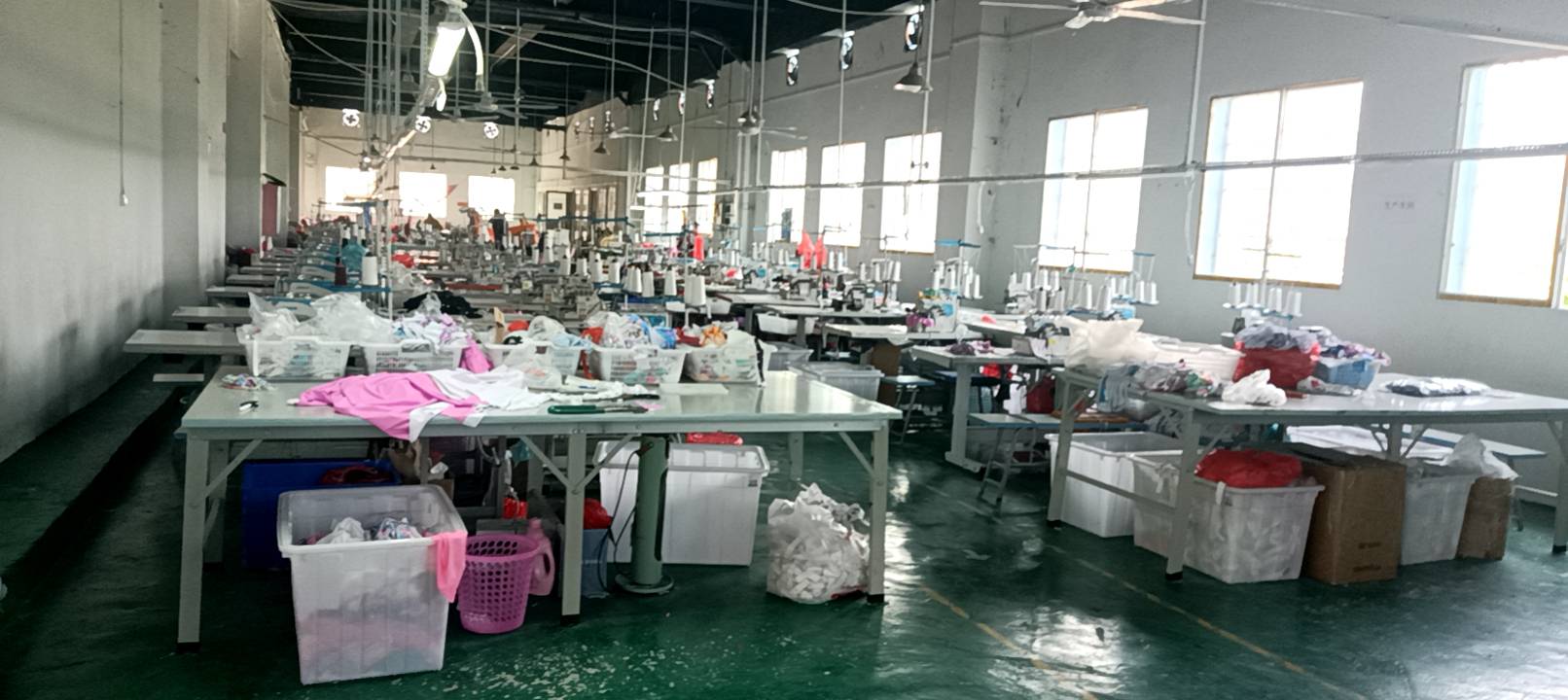 裤头车:2台,剪线机:1台,平车:50台,电烫炉:2台,烫台:2台,冚车:8台,四线:20台