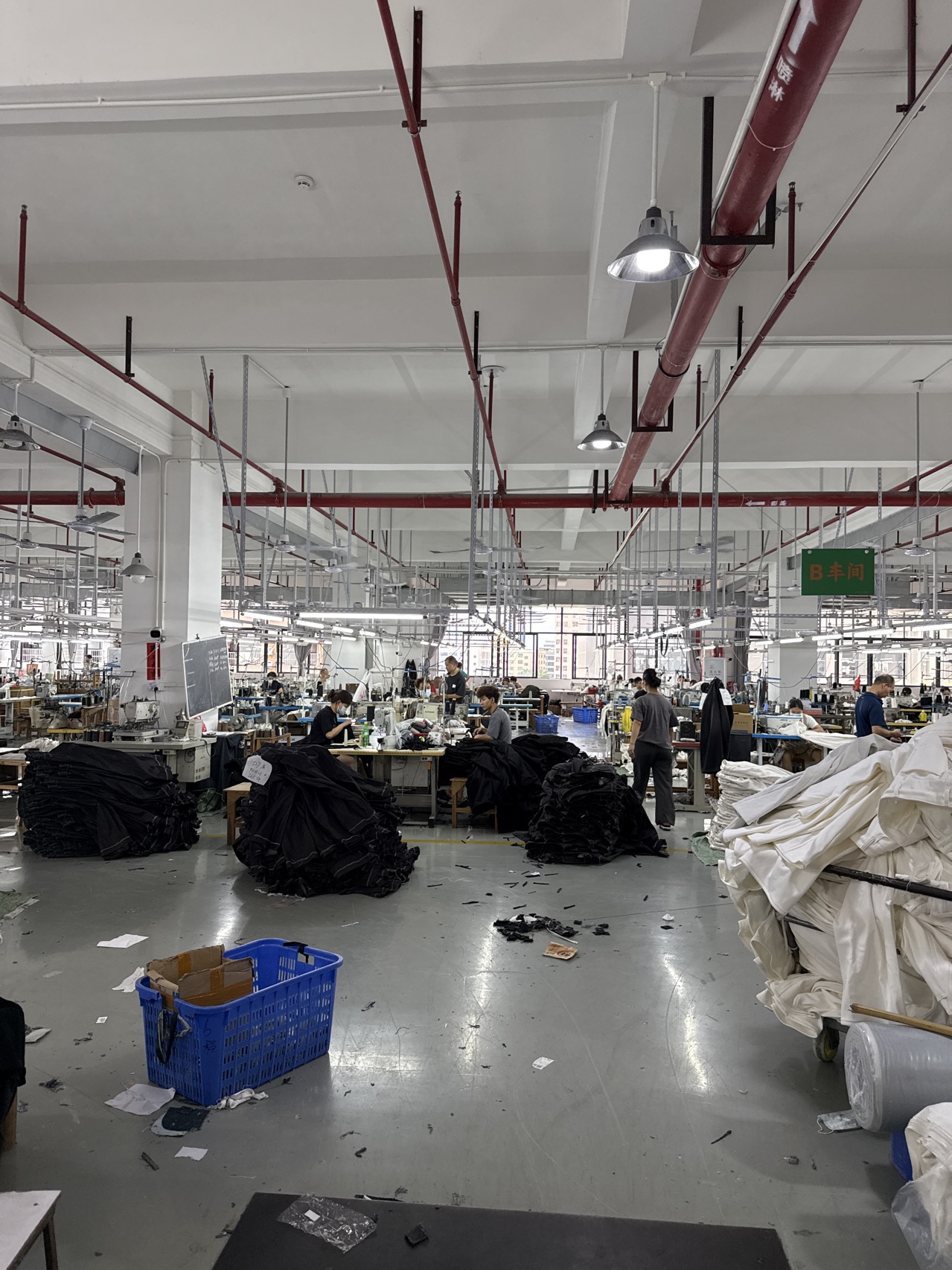 展厅,开发部,版房,裁床,车缝车间,尾部
