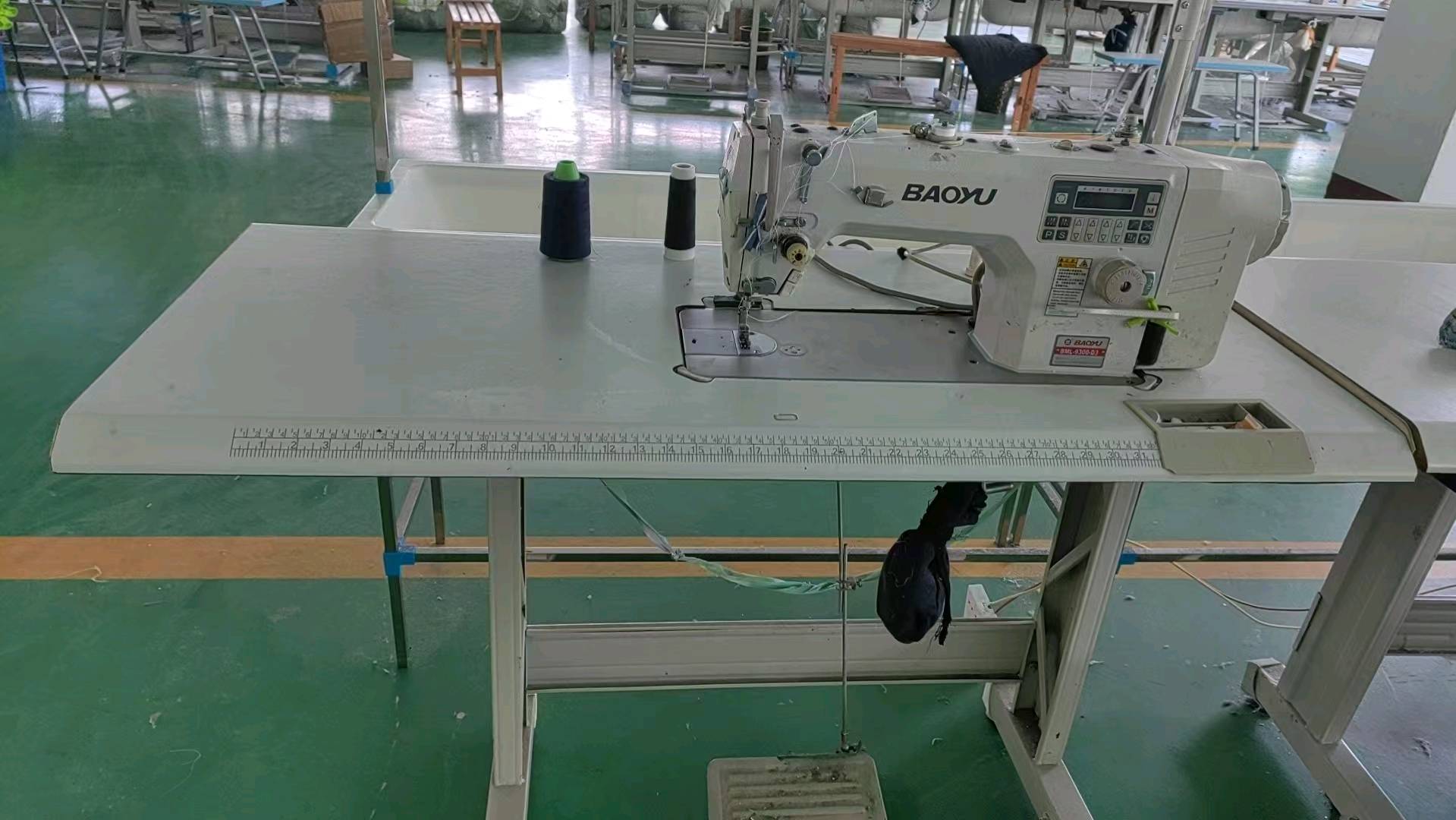 裤头车:1台,啤机:1台,断布机:1台,钉扣:1台,平车:18台,电烫炉:1台,直眼:1台,双针车:1台,电剪:1台,烫台:3台,冚车:2台,唛架机:1台,裁床:1台,四线:3台