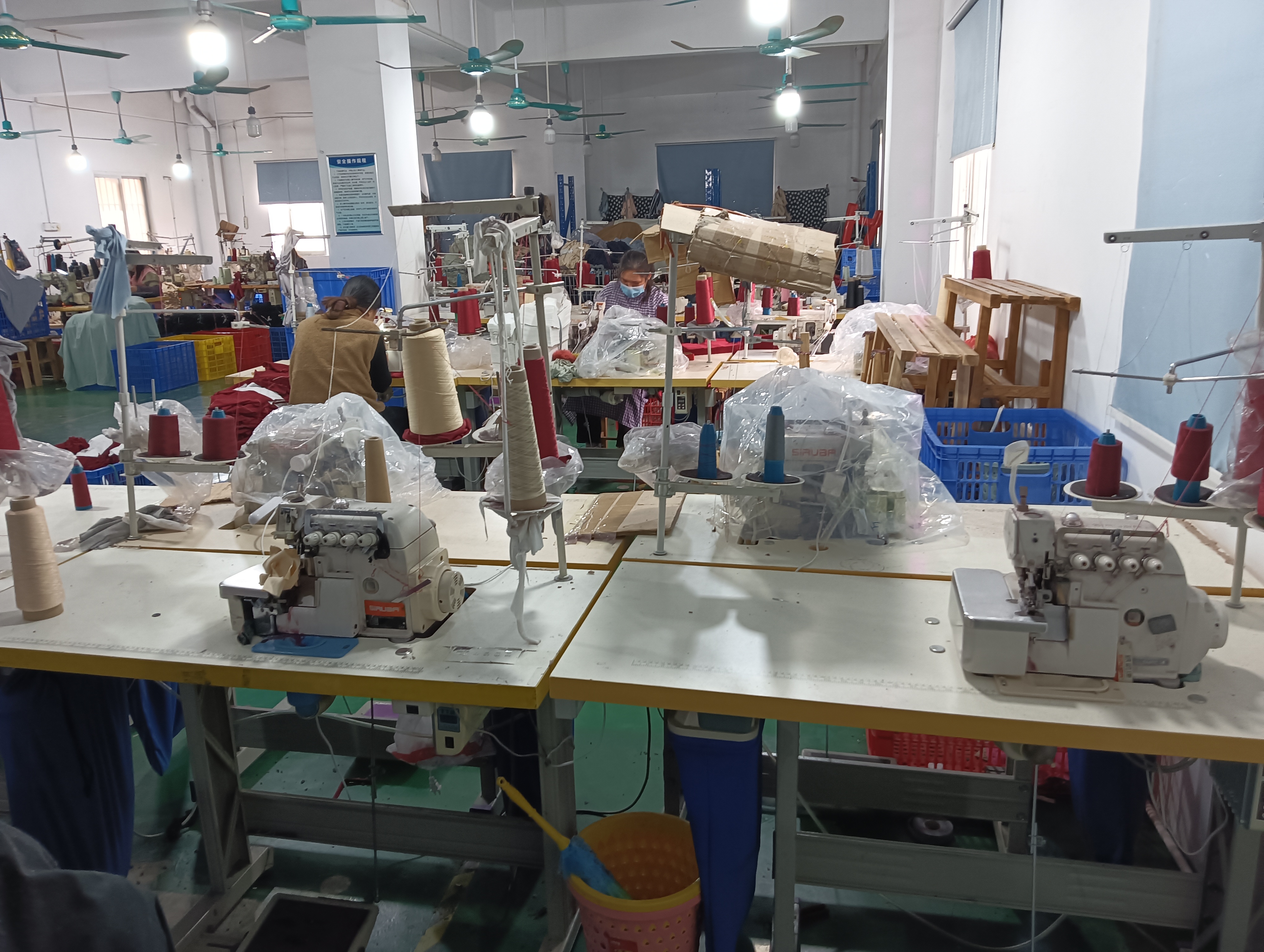 裤头车:7台,智能模板机:2台,自动拉布机:2台,电脑自动裁:2台,松布机:2台,定扣机:3台,挑脚机:5台,剪线机:8台,验布机:1台,断布机:1台,自动打扣机:5台,平车:16台,电烫炉:8台,针扣机:15台,打边机:39台,双针车:6台,电剪:18台,烫台:5台,冚车:15台,唛架机:5台,裁床:2台,五线:9台,四线:13台