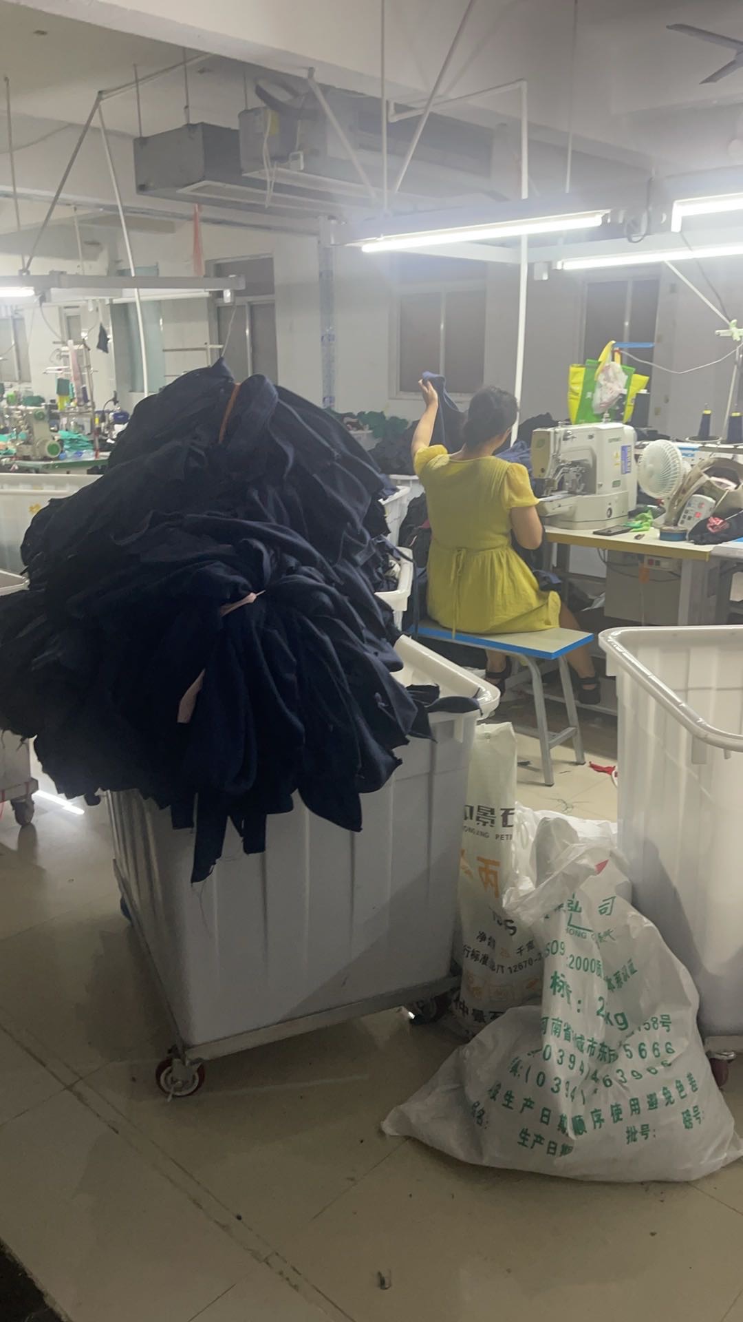 定扣机:1台,挑脚机:1台,钉扣:1台,平车:21台,电烫炉:1台,双针车:4台,电剪:3台,烫台:3台,冚车:6台,唛架机:1台,水空调:3台,裁床:2台,五线:5台,四线:37台