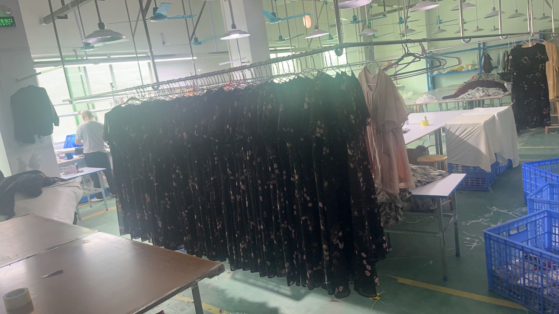 裤头车:1台,电剪:5台,烫台:10台,冚车:4台,唛架机:1台,锅炉:1台,裁床:2台,五线:3台,四线:10台