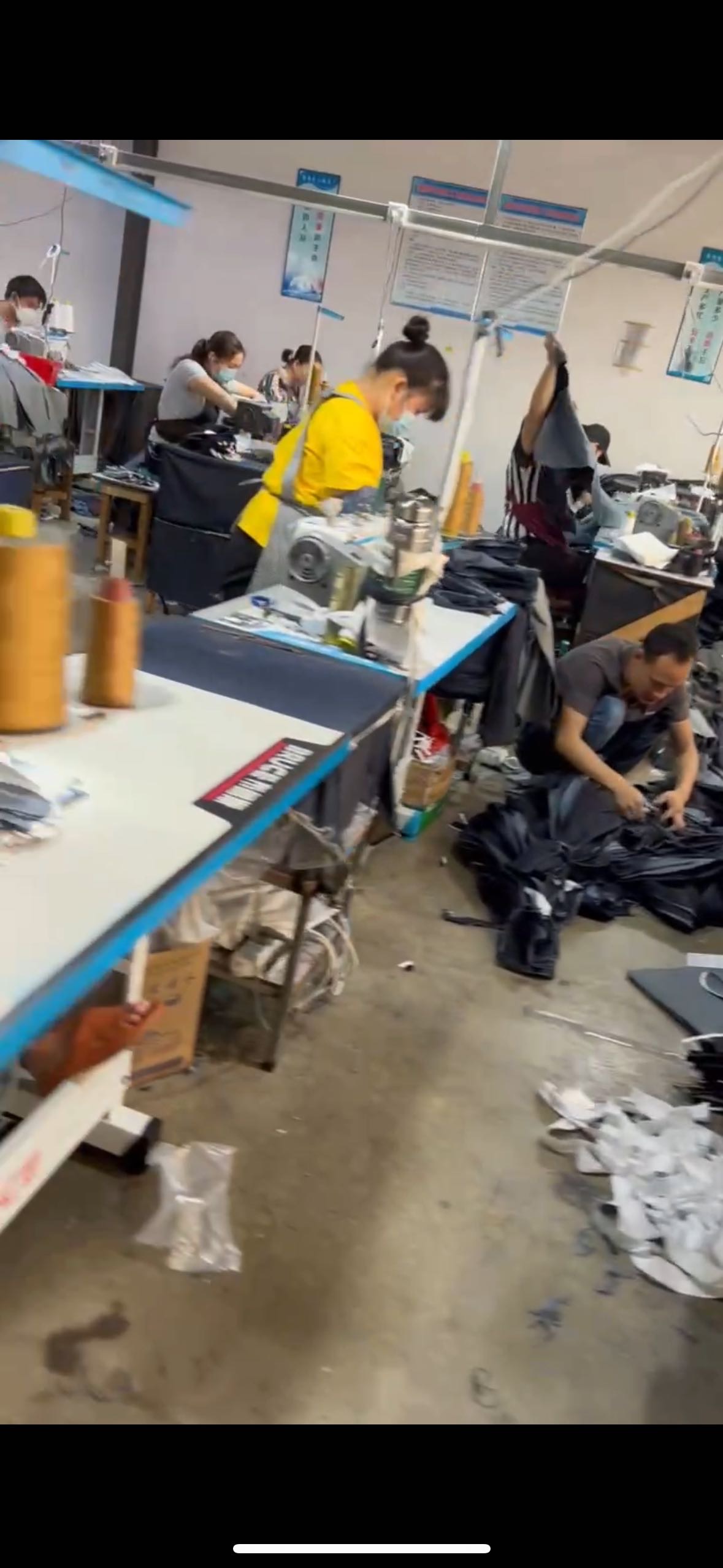 裤头车:2台,智能模板机:1台,松布机:2台,定扣机:2台,挑脚机:2台,剪线机:3台,验布机:1台,断布机:2台,钉扣:4台,自动打扣机:2台,平车:60台,直眼:2台,打边机:12台,双针车:5台,电剪:8台,烫台:12台,唛架机:2台,锅炉:2台,裁床:4台,五线:6台,四线:6台