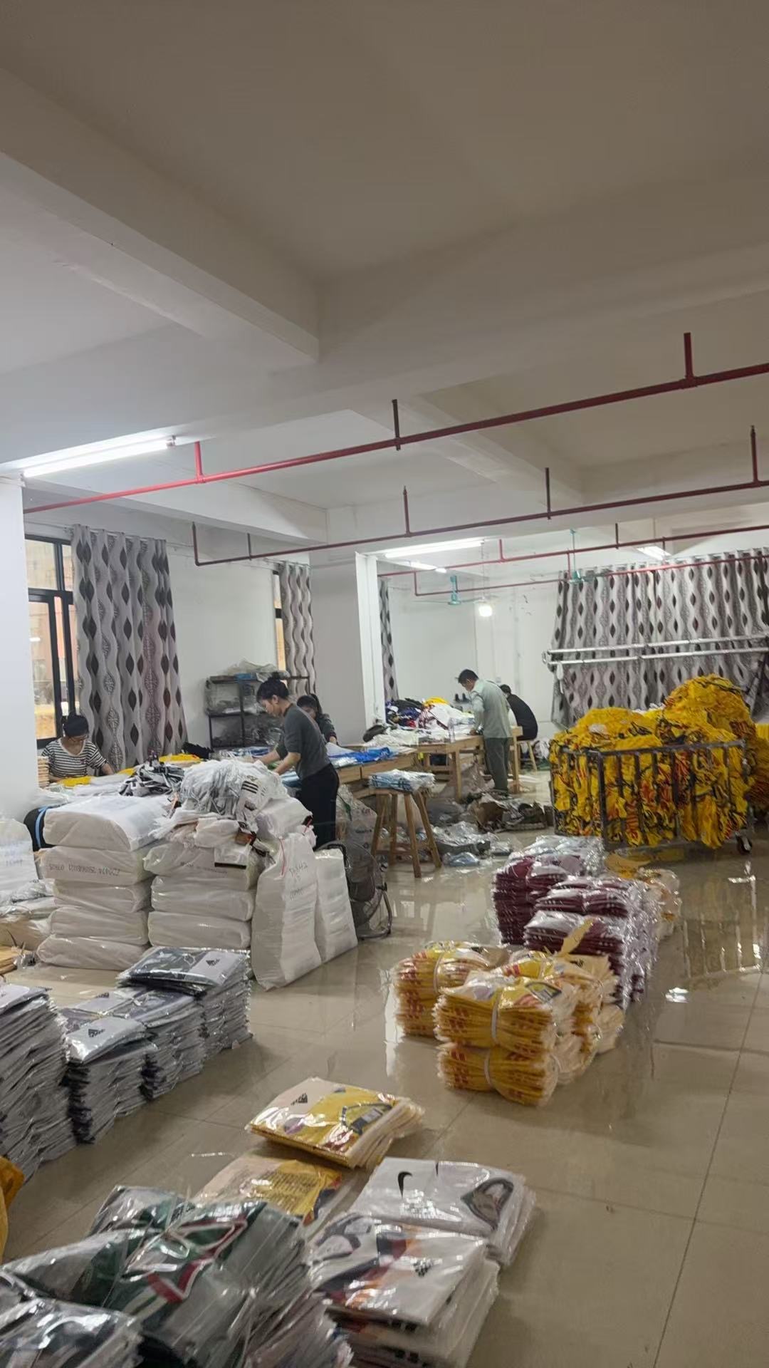 现工厂专门加工生产运动类型套装,包括足球套装,篮球套装,运动长裤,运动短裤。