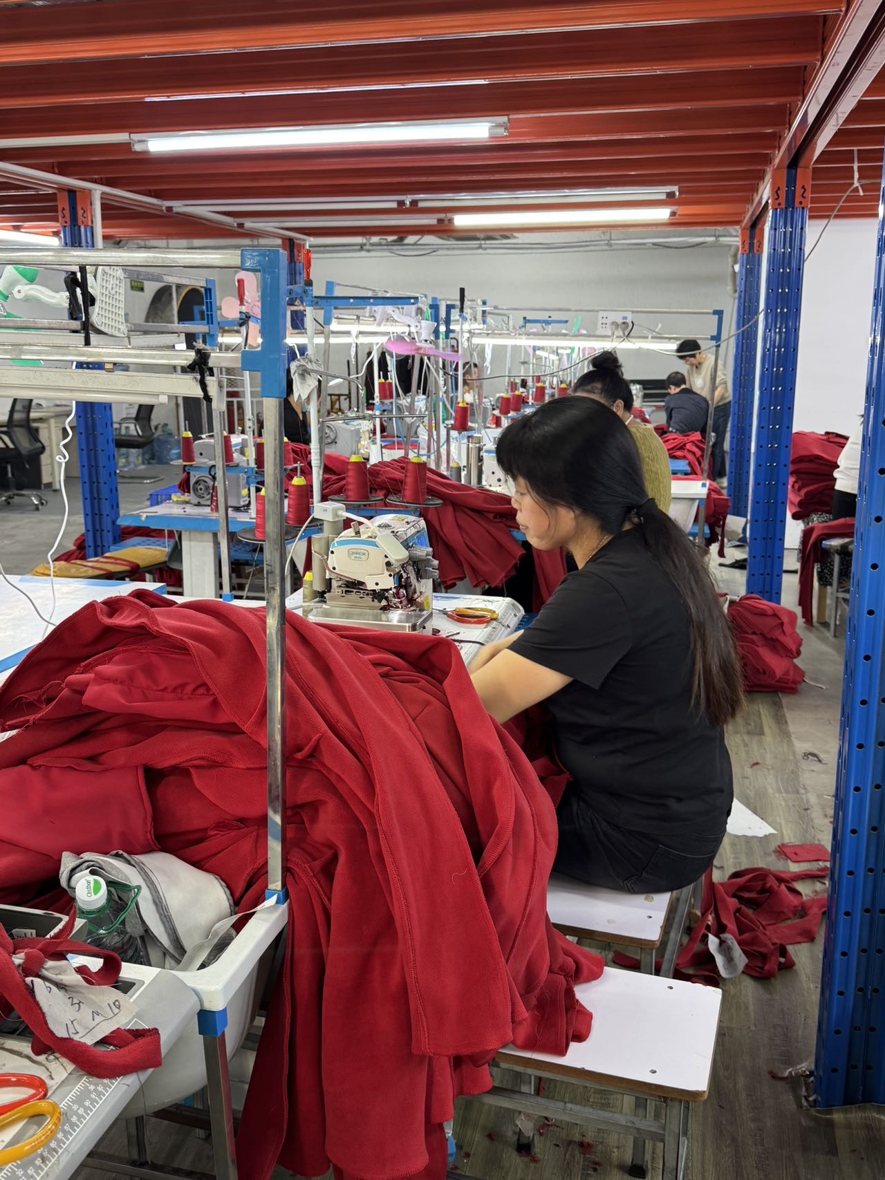 展厅,开发部,版房,裁床,车缝车间,尾部