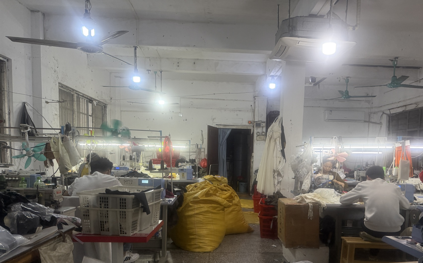 自动拉布机:1台,吊机:2台,平车:40台,电烫炉:3台,打边机:20台,烫台:3台,唛架机:2台,锅炉:2台,裁床:1台,四线:25台