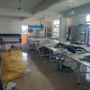 定扣机:5台,验布机:2台,断布机:2台,钉扣:8台,平车:60台,电脑凤眼:2台,打边机:16台,双针车:5台,电剪:4台,烫台:4台,冚车:4台,唛架机:2台,裁床:2台,五线:5台,四线:16台