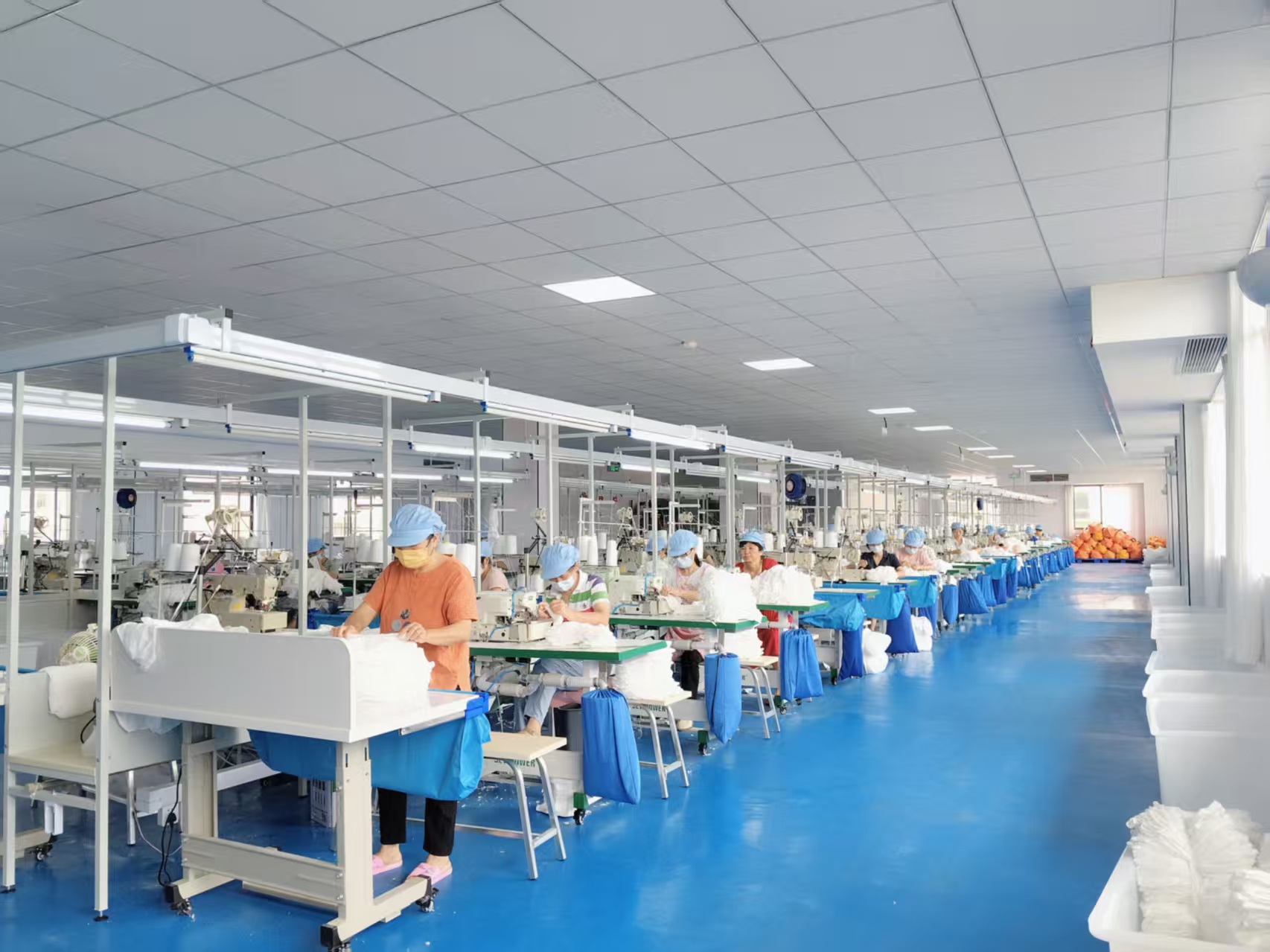 裤头车:40台,平车:15台,打边机:100台,双针车:5台,电剪:2台,裁床:2台