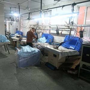 裤头车:2台,智能模板机:2台,自动拉布机:2台,电脑自动裁:2台,啤机:2台,松布机:2台,定扣机:2台,挑脚机:2台,剪线机:2台,验布机:2台,断布机:2台,钉扣:2台,自动打扣机:2台,电烫炉:3台,打边机:3台,烫台:3台,唛架机:2台,水空调:2台