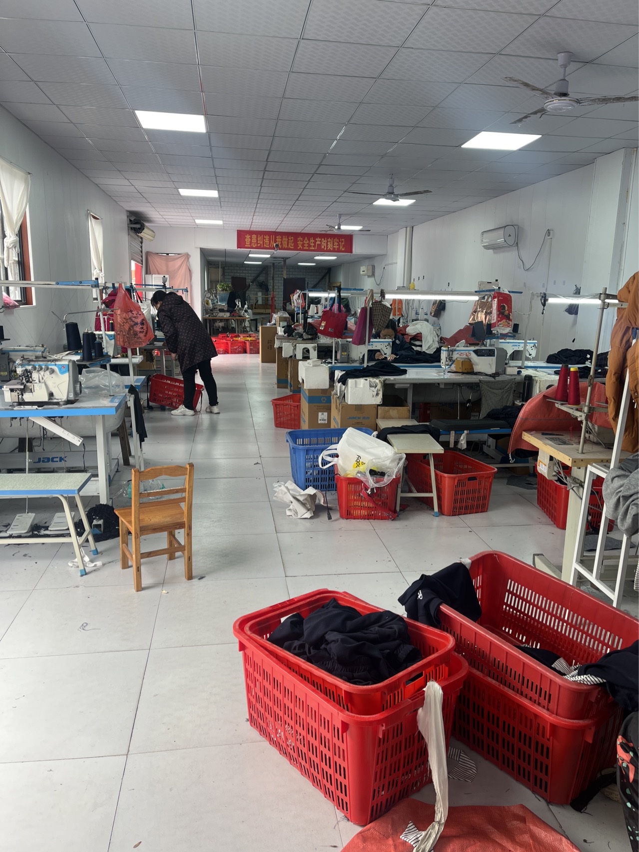 剪线机:3台,验布机:1台,断布机:1台,钉扣:5台,自动打扣机:1台,平眼:1台,平车:20台,电烫炉:3台,双针车:5台,电剪:3台,烫台:3台,冚车:5台,锅炉:3台,裁床:1台,五线:10台,四线:10台