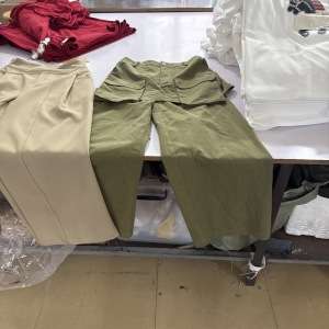 裤头车:1台,松布机:1台,定扣机:2台,挑脚机:1台,剪线机:2台,验布机:1台,断布机:1台,钉扣:1台,平眼:1台,平车:25台,电烫炉:1台,针扣机:1台,直眼:1台,打边机:7台,双针车:2台,电剪:2台,烫台:2台,冚车:2台,唛架机:1台,锅炉:1台,水空调:2台,裁床:10台,五线:7台,四线:7台