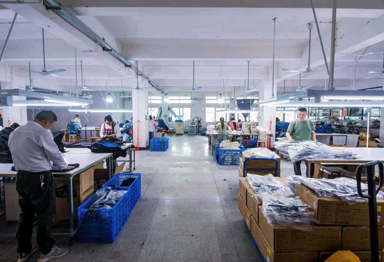 展厅,开发部,版房,裁床,车缝车间,尾部