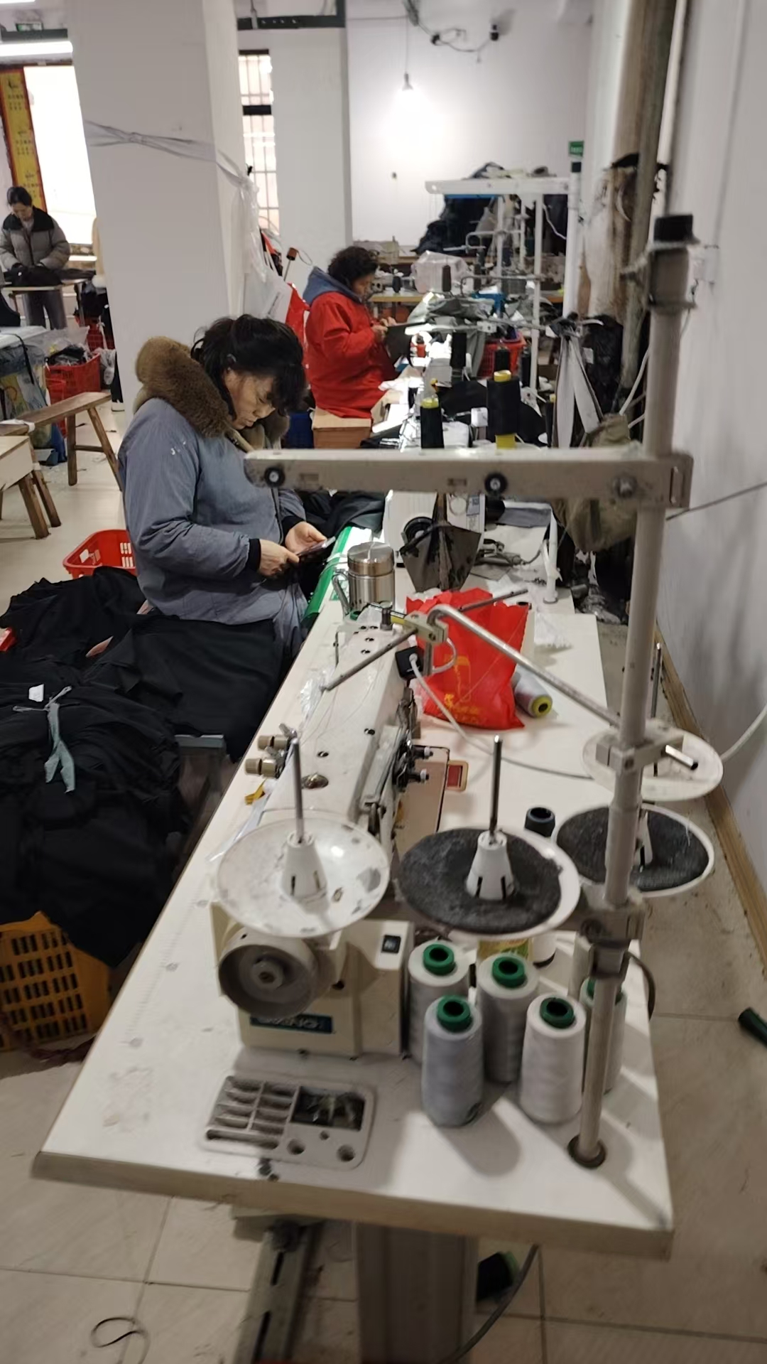 工厂主要生产男女休闲裤有工人30来人厂房面积400平方
