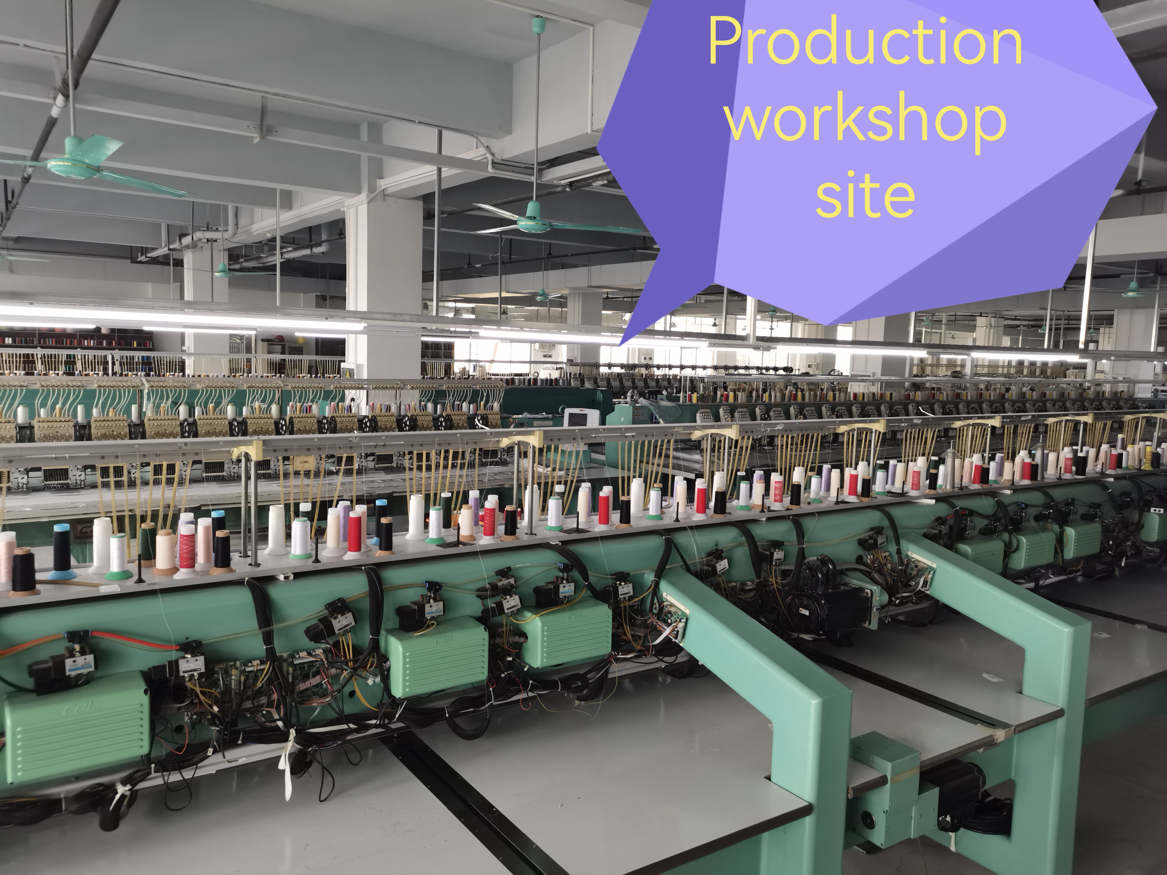 本公司下设制衣厂、绣花厂、专机厂,可为客户提供一站式服务解决方案,自有绣花机25台,绣花工艺种类齐全(珠片绣、珠粒绣、毛巾绣、绳带绣、匹布绣、立体绣、水溶绣、各种图案绗棉、手工钉珠等),专机厂各类专机种类齐全(打缆、对丝、珠边、猫须等),四川南充分厂约200人,梭织类户外装、羽绒服、夹克、衬衣、裤子、马甲、连衣裙、沙滩裤、沙滩衣、防晒服等品类均可生产,各类工艺在广州完成,车缝和尾部在四川南充完成。