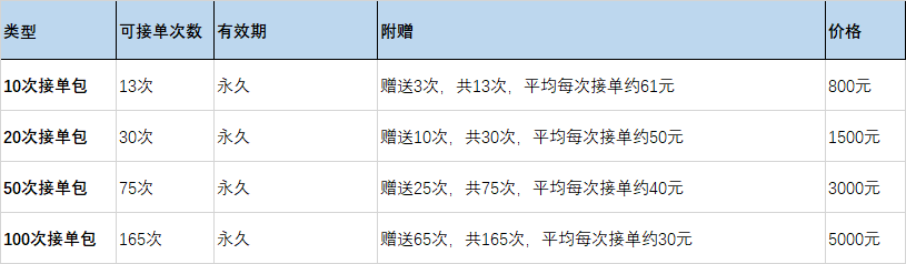 2. 按次数接单会员套餐详情